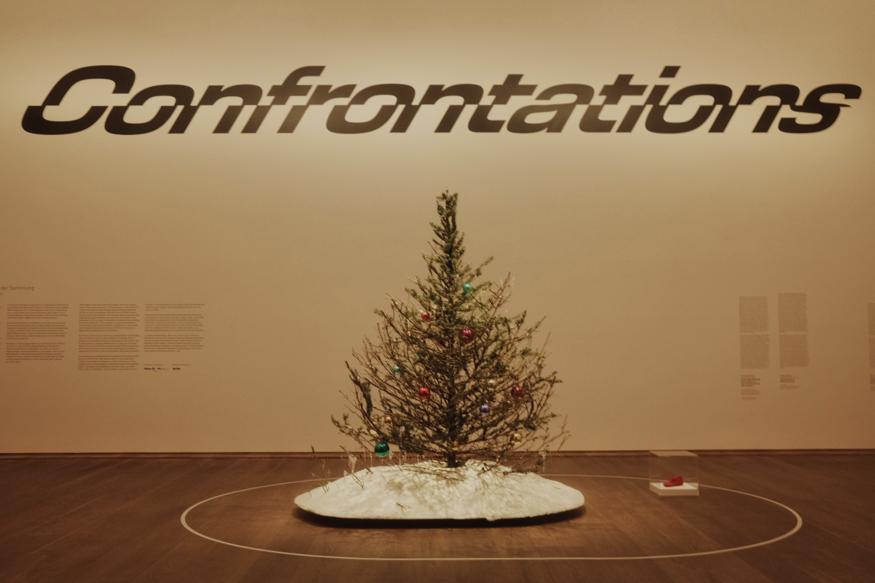 First stop: Confrontations. Confrontations is a gallery that “brings together pairs of works from the Brandhorst Collection that have no art-historical or formal relationship to each other.” The centerpiece of this room is, oddly enough, a Christmas tree by Philippe Parreno simply labled Fraught Times.