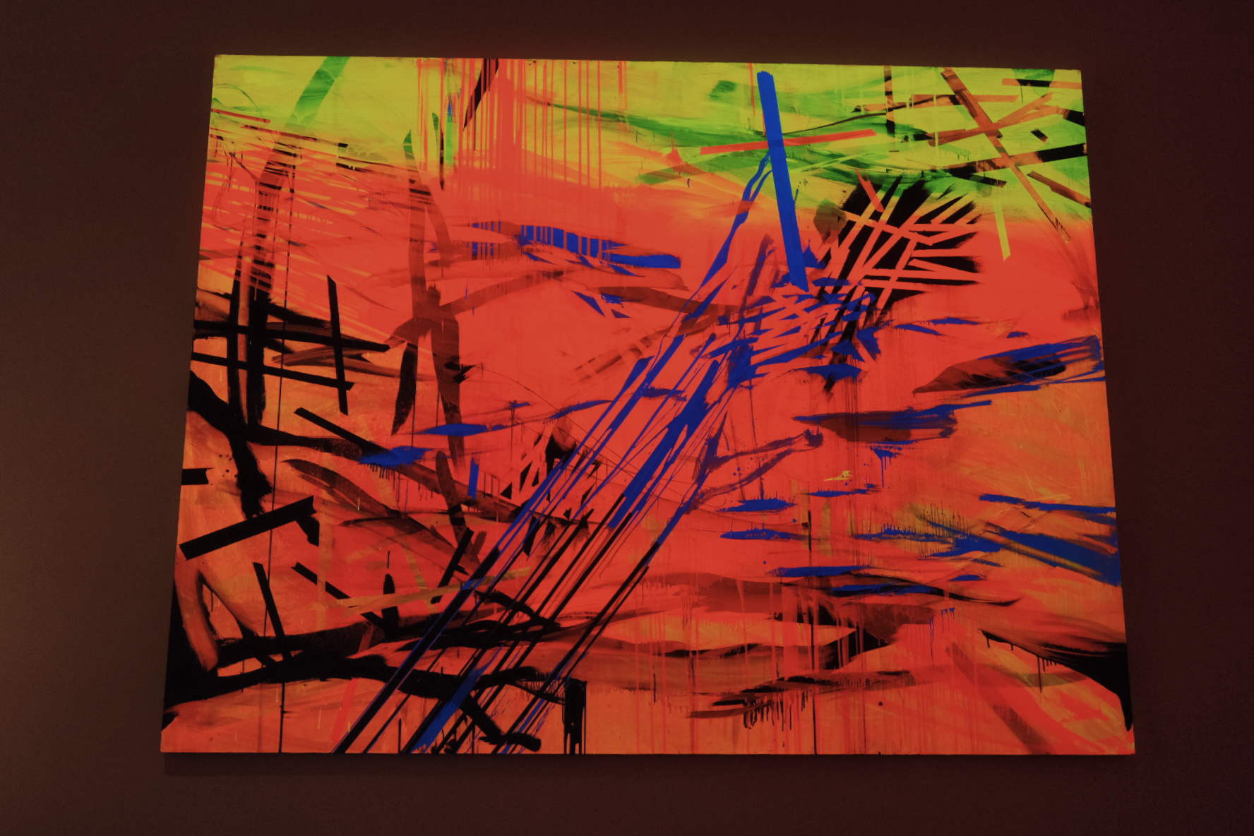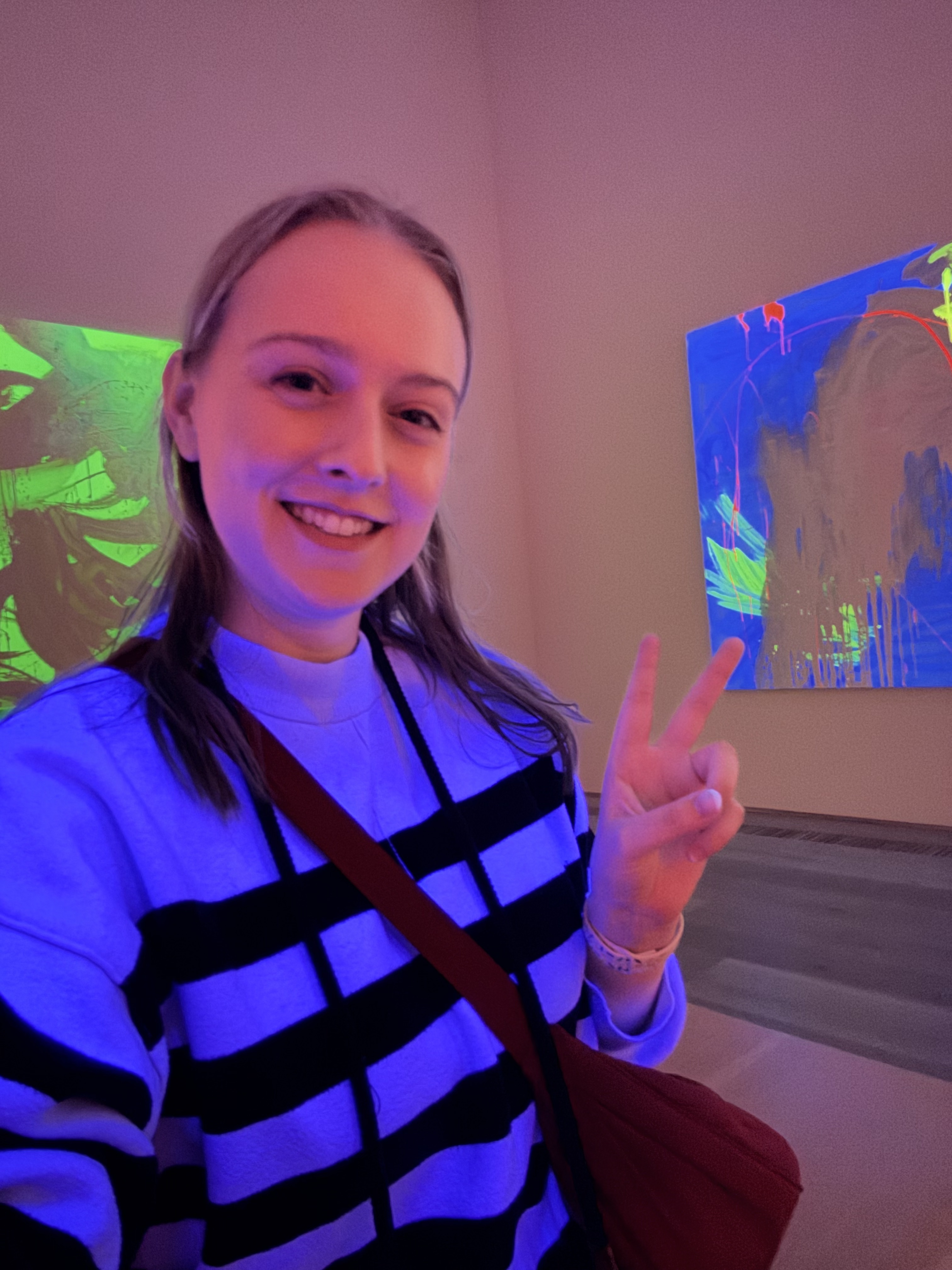 Next, fun in a blacklight room (thank you, white sweater!) showcasing the glowing art of Jacqueline Humphries, which the museum pointed out all symbolize the “glow” of a CRT monitor reflecting back at you.