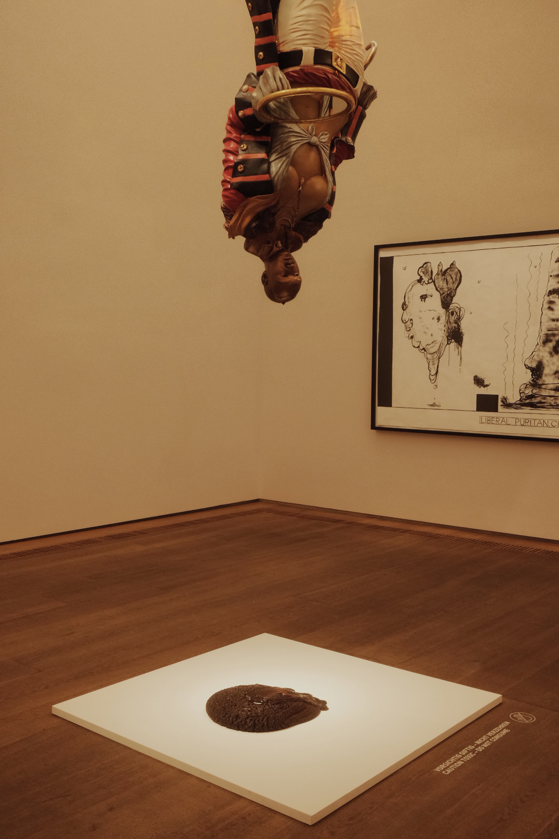 In the next room, A Vessel in a Vessel In A Vessel And So On (Pope.L), in which a pirate sculpture was beheaded and replaced with a bust of Martin Luther King, Jr. It slowly drips with chocolate syrup you’re politely asked not to touch (nor eat).